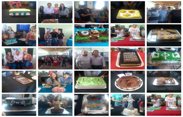 Os alunos do Ensino Médio fizeram bolos que representavam disciplinas escolares, monumentos e lugares clássicos do Município de Muzambinho, como a Praça Pedro de Alcântara e o Chapéu do Sol.